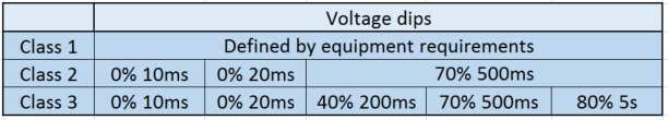 國(guó)際標(biāo)準(zhǔn)EN61000-4-11:2004定義了各種設(shè)備類別的推薦測(cè)試級(jí)別,但應(yīng)從通用標(biāo)準(zhǔn)或產(chǎn)品標(biāo)準(zhǔn)中選擇特定的測(cè)試級(jí)別。